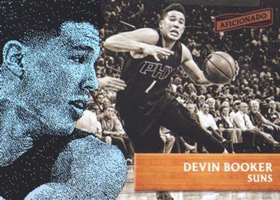 The Devin Booker 2016 Aficionado #43 Base card is 1 of 12 Devin Booker's card variations in the 2016 Aficionado set being tracked by Sports Card Investor, including Artist's Proof, Opening Night Preview Edition, Tip Off, Artist's Proof Red /99, and Artist's Proof Gold /1.
