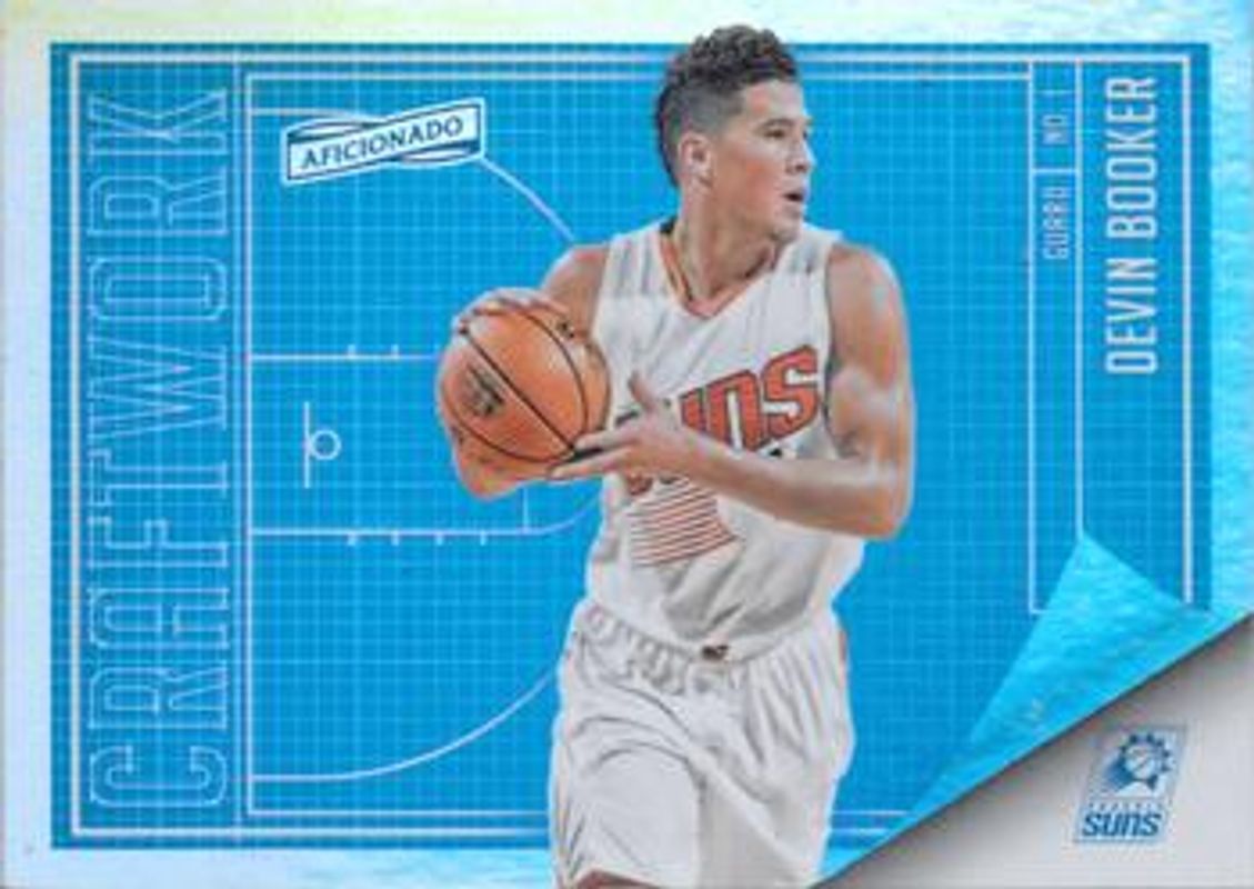 The Devin Booker 2016 Aficionado #55 Craftwork card is 1 of 12 Devin Booker's card variations in the 2016 Aficionado set being tracked by Sports Card Investor, including Base, Artist's Proof, Opening Night Preview Edition, Tip Off, and Artist's Proof Red /99.