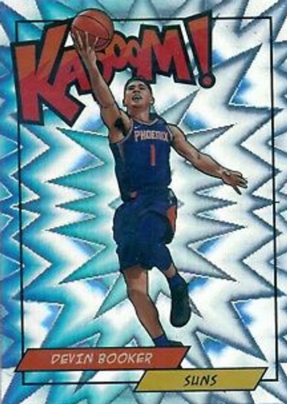 The Devin Booker 2018 Panini Rewards #K-DB Kaboom! /(SSP) card in Raw condition has not changed in price in the last 30 days and was last sold for $735.00 .