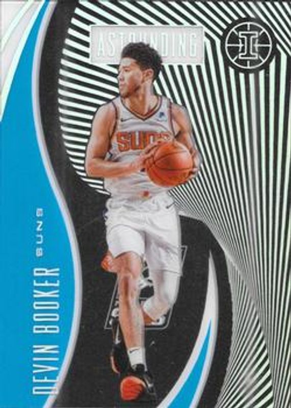 The Devin Booker 2019 Illusions #14 Astounding - Sapphire card is 1 of 53 Devin Booker's card variations in the 2019 Illusions set being tracked by Sports Card Investor, including Base, Trophy Collection Bronze, Trophy Collection Emerald, Trophy Collection Orange, and Trophy Collection Pink.