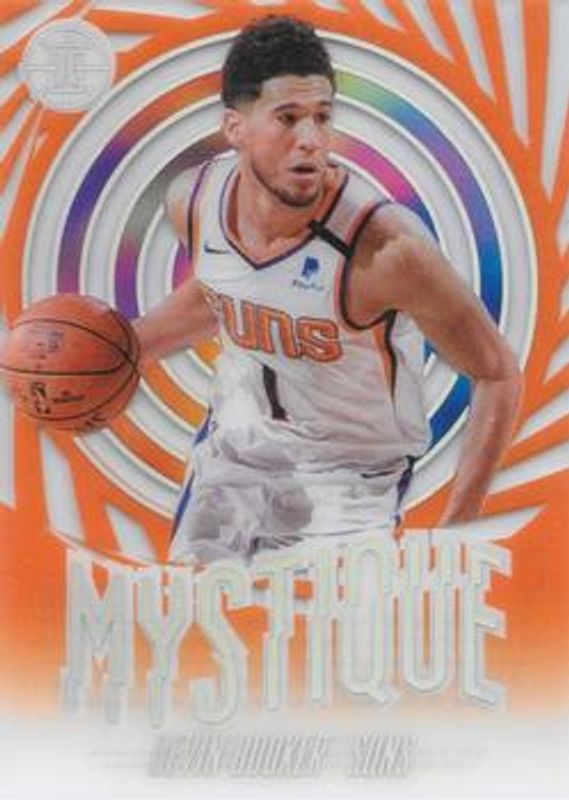 The Devin Booker 2019 Illusions #20 Mystique - Orange card is 1 of 53 Devin Booker's card variations in the 2019 Illusions set being tracked by Sports Card Investor, including Base, Trophy Collection Bronze, Trophy Collection Emerald, Trophy Collection Orange, and Trophy Collection Pink.