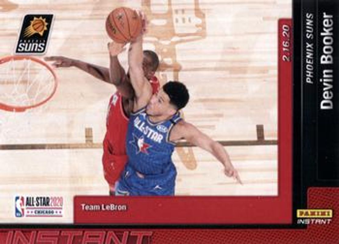 The Devin Booker 2019 Panini Instant All Stars #7 Base card is 1 of 3 Devin Booker's card variations in the 2019 Panini Instant All Stars set being tracked by Sports Card Investor, including Green /10, and Black /1.