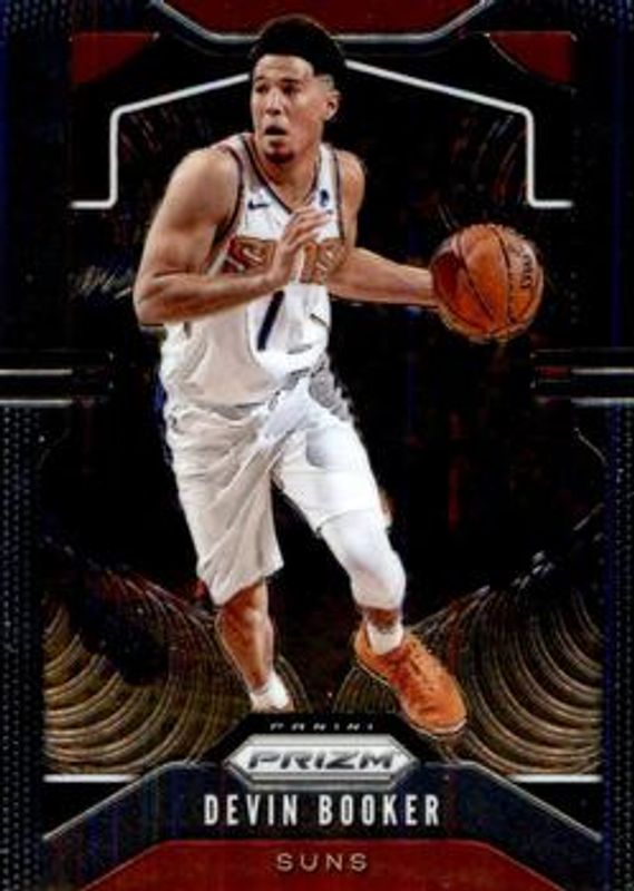The Devin Booker 2019 Prizm #67 Base card is 1 of 54 Devin Booker's card variations in the 2019 Prizm set being tracked by Sports Card Investor, including Choice Blue Yellow Green, Fanatics Green Ice, Fast Break, FOTL Blue Shimmer, and Green.