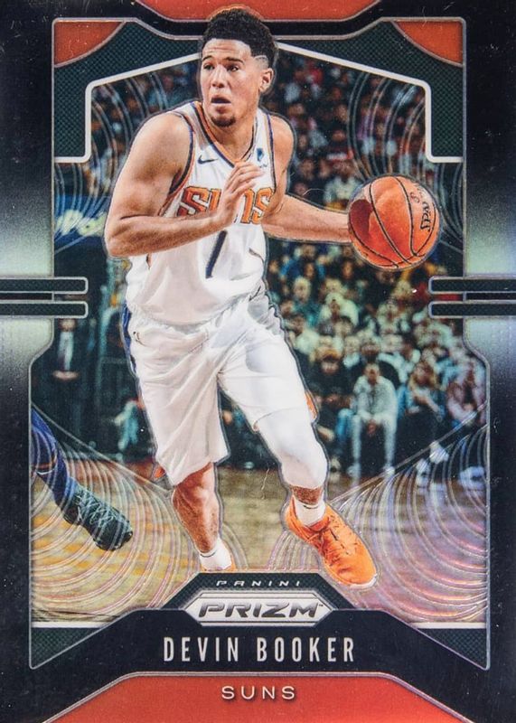 This card is 1 of 54 Devin Booker's card variations in the 2019 Prizm set being tracked by Sports Card Investor, including Base, Choice Blue Yellow Green, Fanatics Green Ice, Fast Break, and FOTL Blue Shimmer.