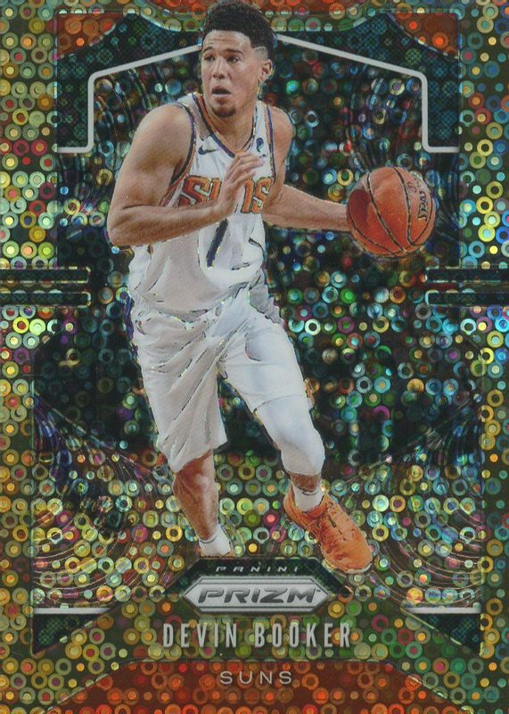 This card is 1 of 54 Devin Booker's card variations in the 2019 Prizm set being tracked by Sports Card Investor, including Base, Choice Blue Yellow Green, Fanatics Green Ice, Fast Break, and FOTL Blue Shimmer.