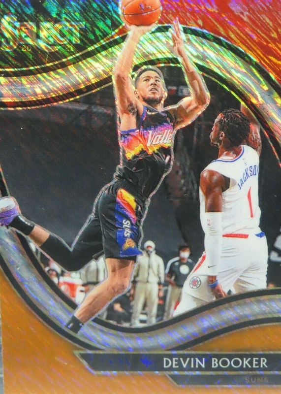 2020-21 Panini Select Courtside Red White Orange Shimmer Prizm Devin Booker #229