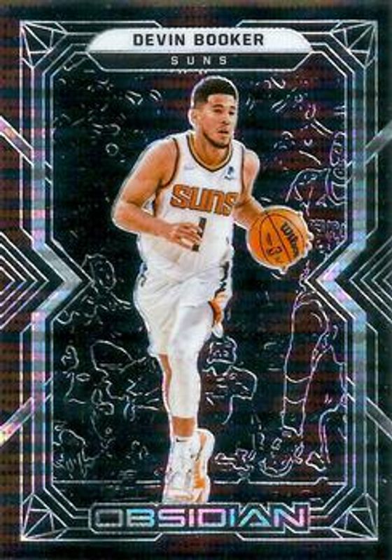 The Devin Booker 2021 Obsidian #85 Electric Etch Asia card is 1 of 39 Devin Booker's card variations in the 2021 Obsidian set being tracked by Sports Card Investor, including Base, Electric Etch Blue Flood, Electric Etch Red Flood, Electric Etch White Pulsar, and Electric Etch Yellow Flood.
