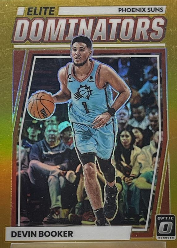 Devin Booker Elite Dominators Gold Prizm /10! 2022 Panini Donruss Optic Suns