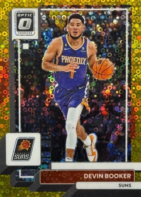 This card is 1 of 41 Devin Booker's card variations in the 2022 Optic set being tracked by Sports Card Investor, including Choice Dragon /(SSP), Photon /(SSP), White Sparkle /(SSP), Black Velocity /39, and Fast Break Pink /25.