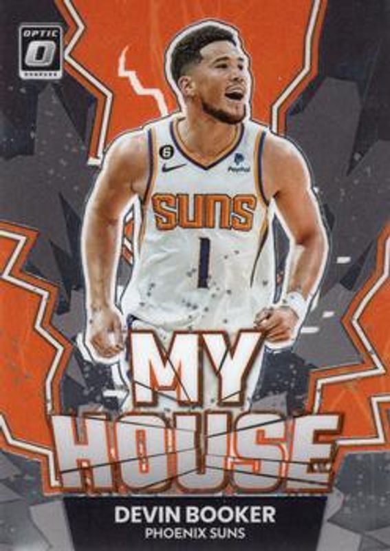 The Devin Booker 2022 Optic #14 My House card is 1 of 89 Devin Booker's card variations in the 2022 Optic set being tracked by Sports Card Investor, including Base, Checkerboard, Choice Red & Green, Fast Break, and Green Shock.