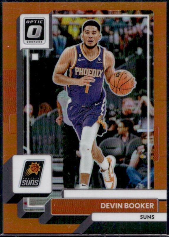 The Devin Booker 2022 Optic #134 Orange /199 card is 1 of 89 Devin Booker's card variations in the 2022 Optic set being tracked by Sports Card Investor, including Base, Checkerboard, Choice Red & Green, Fast Break, and Green Shock.