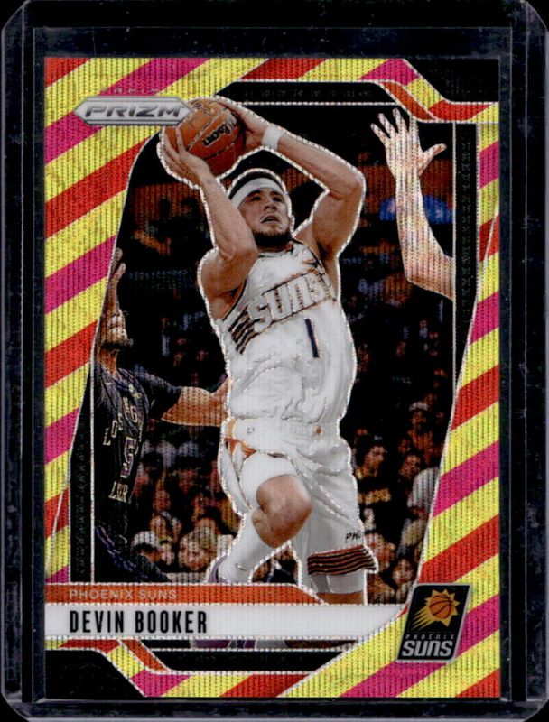 The Devin Booker 2024 Prizm #8 Multi Wave /88 card is 1 of 74 Devin Booker's card variations in the 2024 Prizm set being tracked by Sports Card Investor, including Base, Green, Green Ice, Green Wave, and Hyper.