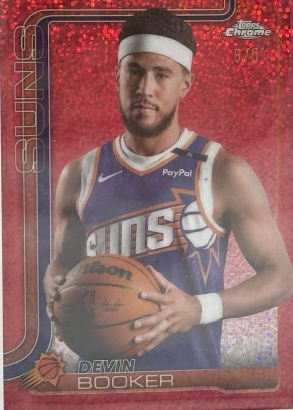 Recent Sales of Devin Booker 2025 Topps Chrome #195 Image Variation - Red Speckle Refractor /5 Raw