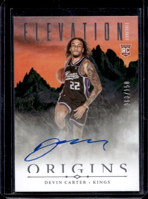 The Devin Carter 2024 Origins #ES-DEV Elevation Signatures /175 Rookie card is 1 of 64 Devin Carter's card variations in the 2024 Origins set being tracked by Sports Card Investor, including Base, Basketballs, Cosmos, Tessellated, and Red /299.