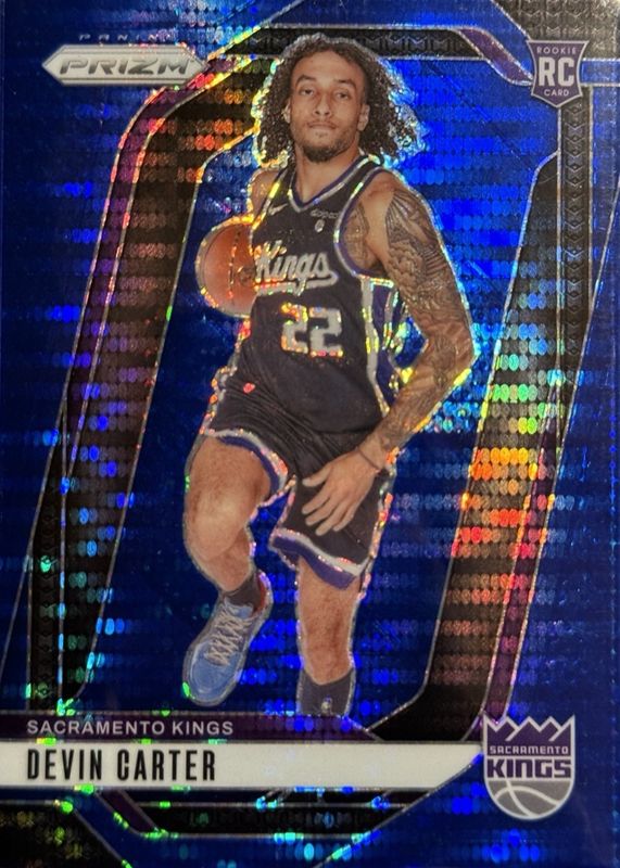 The Devin Carter 2024 Prizm #231 Blue Pulsar /99 Rookie card in Raw condition has not changed in price in the last 30 days and was last sold for $3.00 .