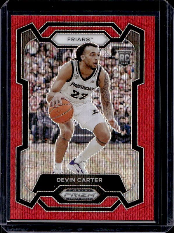 The Devin Carter 2024 Prizm Draft Picks #27b Silver Rookie card is 1 of 112 Devin Carter's card variations in the 2024 Prizm Draft Picks set being tracked by Sports Card Investor, including #27b Base, #27 Base, #27 Green, #27b Green, and #27b Green Wave.
