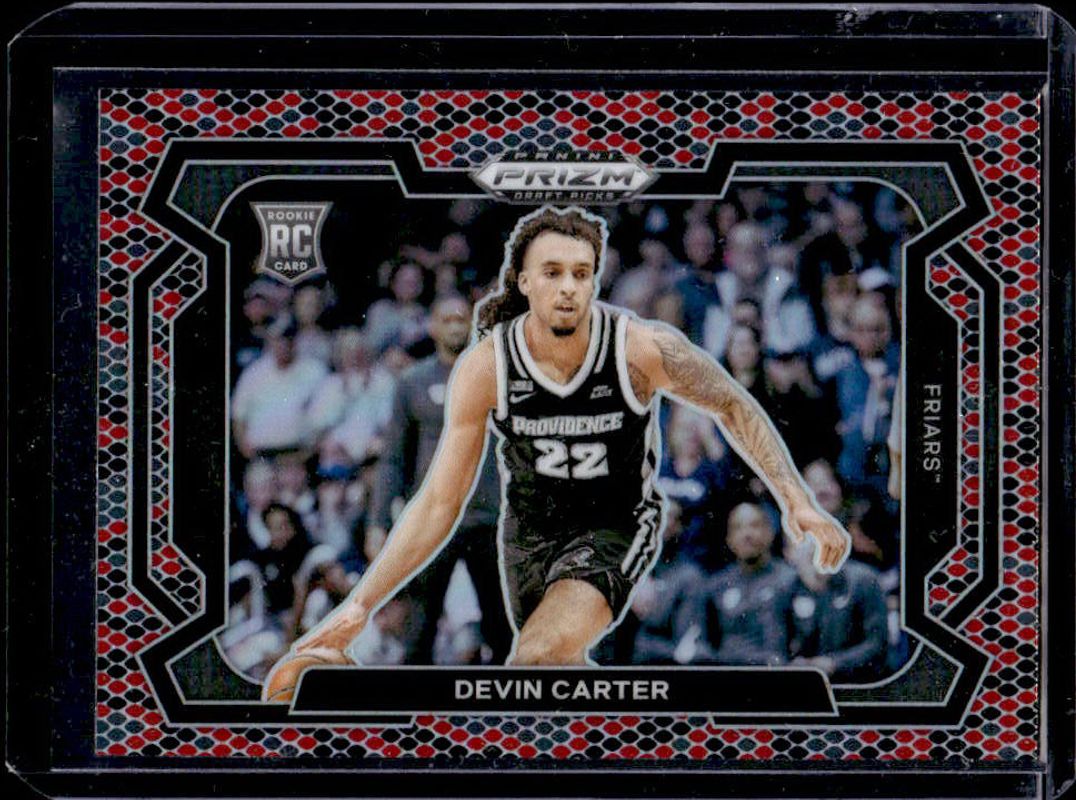The Devin Carter 2024 Prizm Draft Picks #27b Snakeskin /(SSP) Rookie card is 1 of 112 Devin Carter's card variations in the 2024 Prizm Draft Picks set being tracked by Sports Card Investor, including #27b Base, #27 Base, #27 Green, #27b Green, and #27b Green Wave.