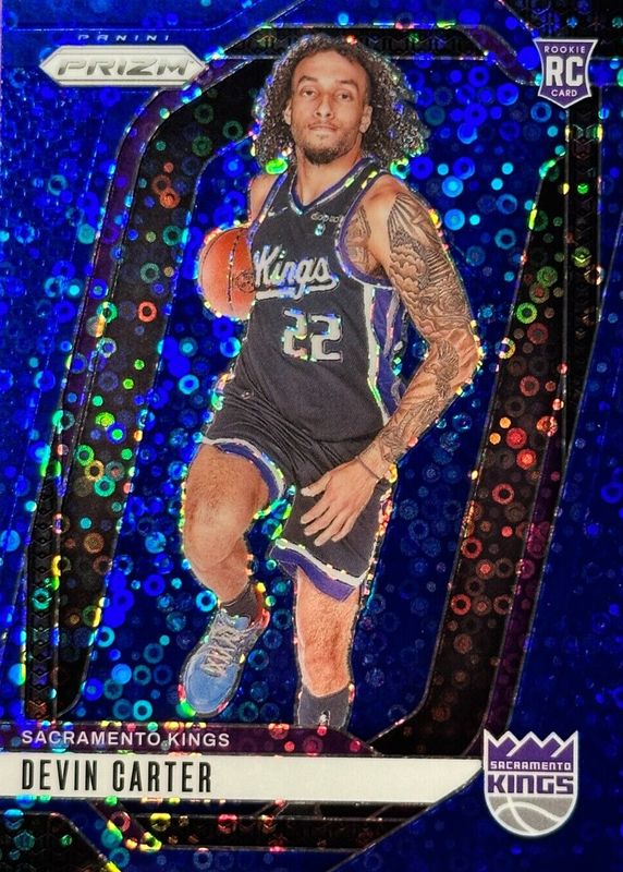 The Devin Carter 2024 Prizm #231 Fast Break Blue /150 Rookie card in Raw condition has moved down -$5.13 (-83.8%) in the last 30 days and was last sold for $0.99 .