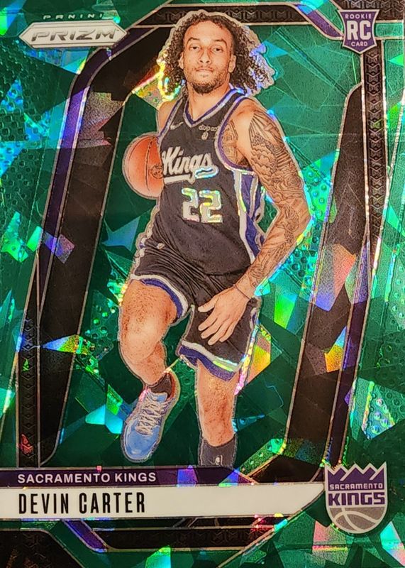 2024-25 Panini Prizm #231 Devin Carter RC Rookie Card SP Green Cracked Ice Kings