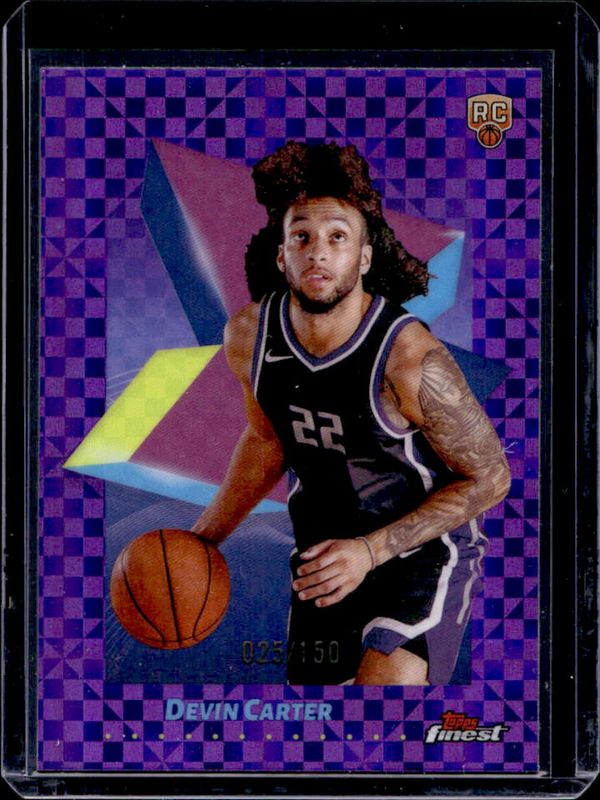 The Devin Carter 2024 Topps Finest #81 Base Common - Purple X-Fractor /150 Rookie card is 1 of 116 Devin Carter's card variations in the 2024 Topps Finest set being tracked by Sports Card Investor, including Arrivals, Arrivals - Geometric Refractor, Arrivals - Refractor, Arrivals - X-Fractor, and Base Common.