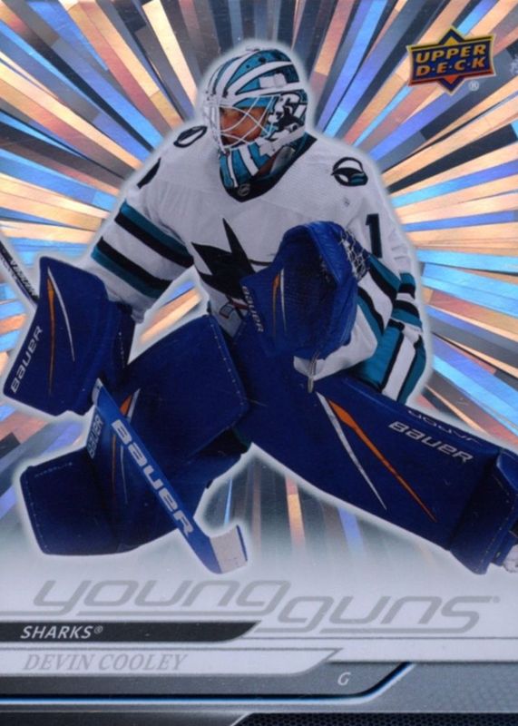 This card is 1 of 8 Devin Cooley's card variations in the 2024 Upper Deck set being tracked by Sports Card Investor, including Young Guns Base, Young Guns - Clear Cut, Young Guns - Deluxe /250, Young Guns - UD Exclusives /100, and Young Guns - Outburst Red /25.