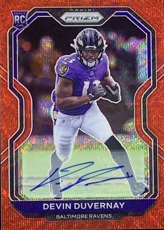 2020 Prizm 380 DEVIN DUVERNAY Rookie Auto Red Wave Prizm 001/149 SP NM Ravens