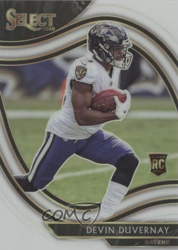 The Devin Duvernay 2020 Select #377 Field Level White /35 Rookie card in Raw condition has not changed in price in the last 30 days and was last sold for $2.60 .