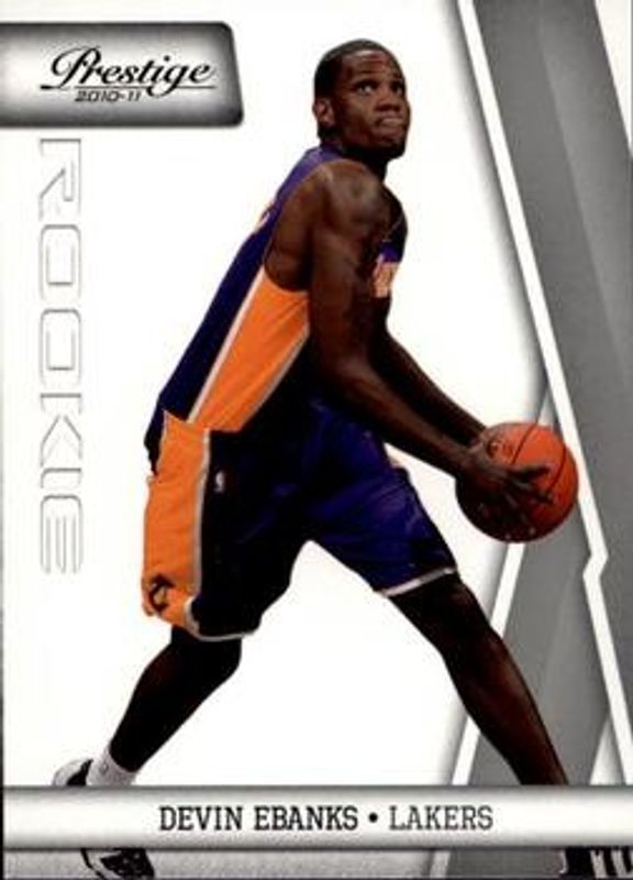 The Devin Ebanks 2010 Prestige #193 Base Rookie card is 1 of 17 Devin Ebanks' card variations in the 2010 Prestige set being tracked by Sports Card Investor, including #201 Bonus Shots Orange /499, #193 Bonus Shots Orange /499, #193 Bonus Shots Gold /249, #201 Bonus Shots Gold /249, and #193 Bonus Shots Purple /49.