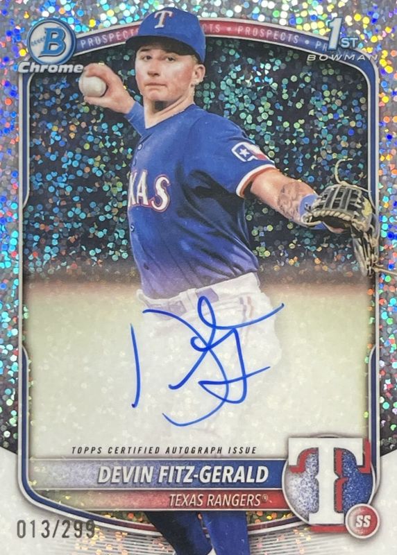 DEVIN FITZ-GERALD 2025 BOWMAN CHROME AUTO SPECKLE REFRACTOR 1ST PROSPECT 13/299