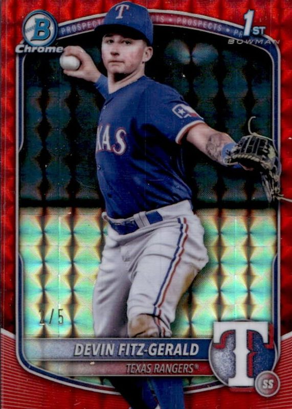 Best Prices Available For Sale of Devin Fitz-Gerald 2025 Bowman Chrome #BCP-158 Prospects - Red Geometric Refractor /5 (1st)