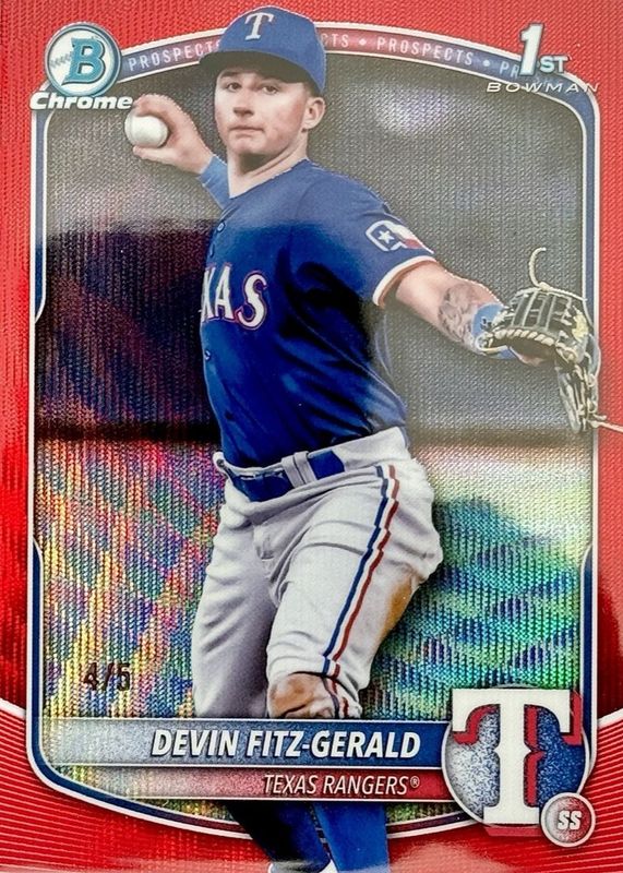 Recent Sales of Devin Fitz-Gerald 2025 Bowman Chrome #BCP-158 Prospects - Red Wave Refractor /5 (1st) Raw