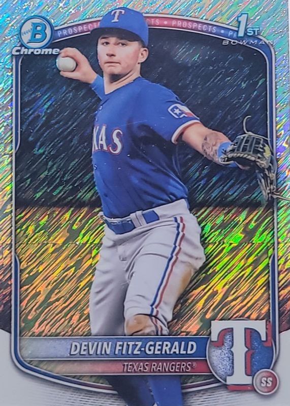 DEVIN FITZ-GERALD 2025 BOWMAN CHROME 1ST SHIMMER REFRACTOR RANGERS Q2446