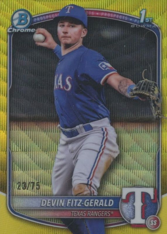 Recent Sales of Devin Fitz-Gerald 2025 Bowman Chrome #BCP-158 Prospects - Yellow Wave Refractor /75 (1st) Raw