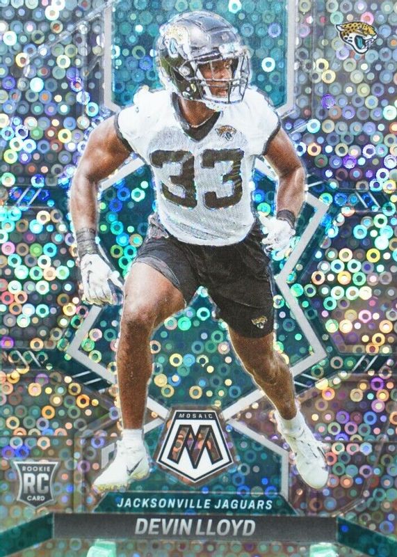 This card is 1 of 31 Devin Lloyd's card variations in the 2022 Mosaic set being tracked by Sports Card Investor, including Base, Green, Pink Camo, Reactive Orange, and Red.