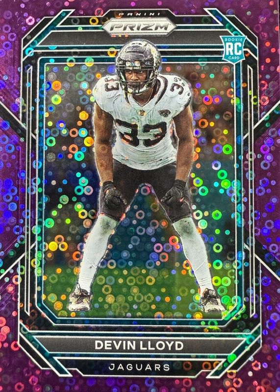 This card is 1 of 51 Devin Lloyd's card variations in the 2022 Prizm set being tracked by Sports Card Investor, including Base, Green, Green Ice, Light Blue, and No Huddle.
