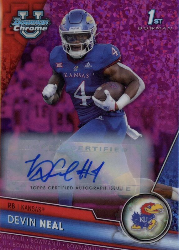 Devin Neal Fuchsia Auto /150 2023 Bowman University Chrome 1st Kansas University