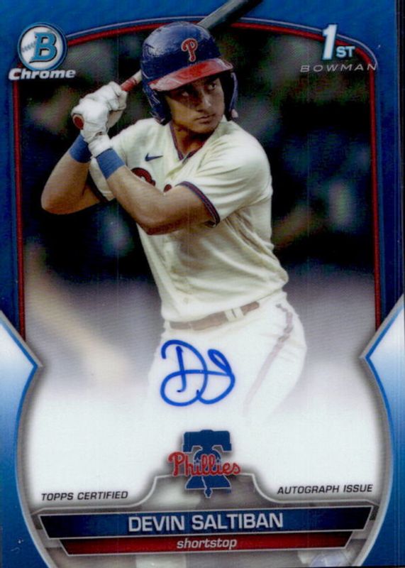 2023 Bowman Draft Chrome Devin Saltiban 1st Blue Refractor Auto /150 Philllies