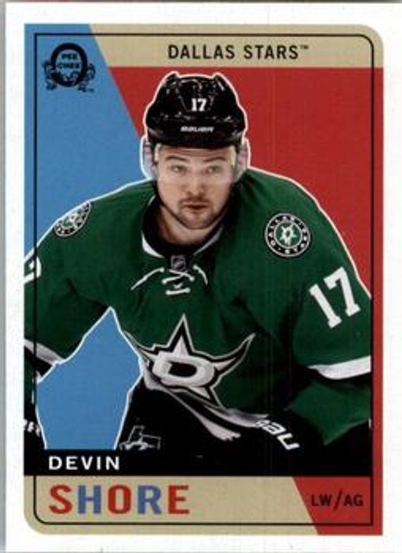 The Devin Shore 2017 O-Pee-Chee #57 Retro card is 1 of 6 Devin Shore's card variations in the 2017 O-Pee-Chee set being tracked by Sports Card Investor, including Base, Rainbow Foil, Red, Retro Blank Back, and Black Rainbow Foil /100.