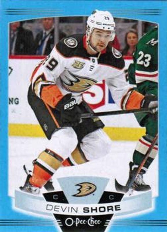 The Devin Shore 2019 O-Pee-Chee #122 Blue Border card is 1 of 8 Devin Shore's card variations in the 2019 O-Pee-Chee set being tracked by Sports Card Investor, including Base, Gold Border, Red Border, Red Border Blank Back, and Retro.