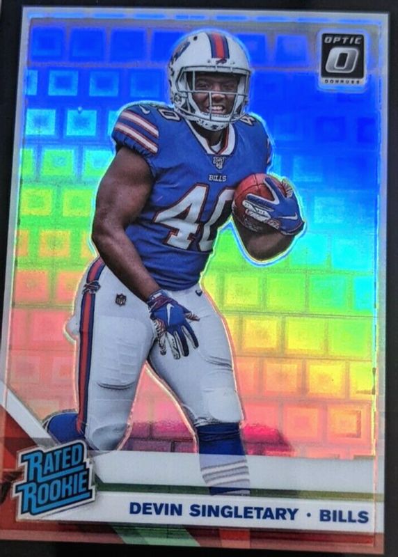 This card is 1 of 31 Devin Singletary's card variations in the 2019 Optic set being tracked by Sports Card Investor, including Base, Bronze, Green Velocity, Holo, and Pink.