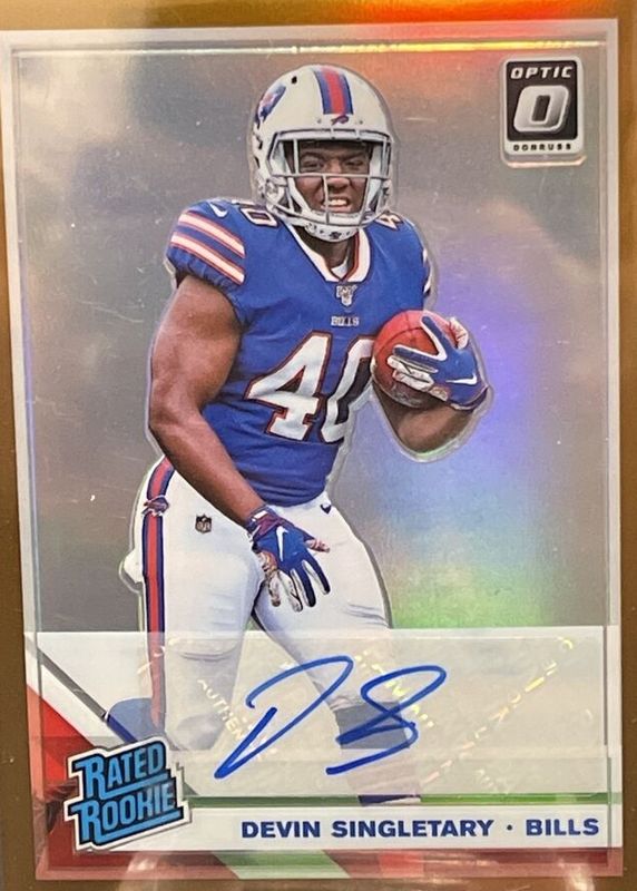 The Devin Singletary 2019 Optic #178 Rated Rookie Autographs - Bronze card in Raw condition has not changed in price in the last 30 days and was last sold for $6.00 .