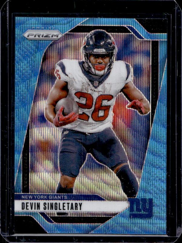 The Devin Singletary 2024 Prizm #213 Blue Wave /230 card is 1 of 84 Devin Singletary's card variations in the 2024 Prizm set being tracked by Sports Card Investor, including Base, Choice Blue Yellow Green, Choice Silver, Disco, and Green.