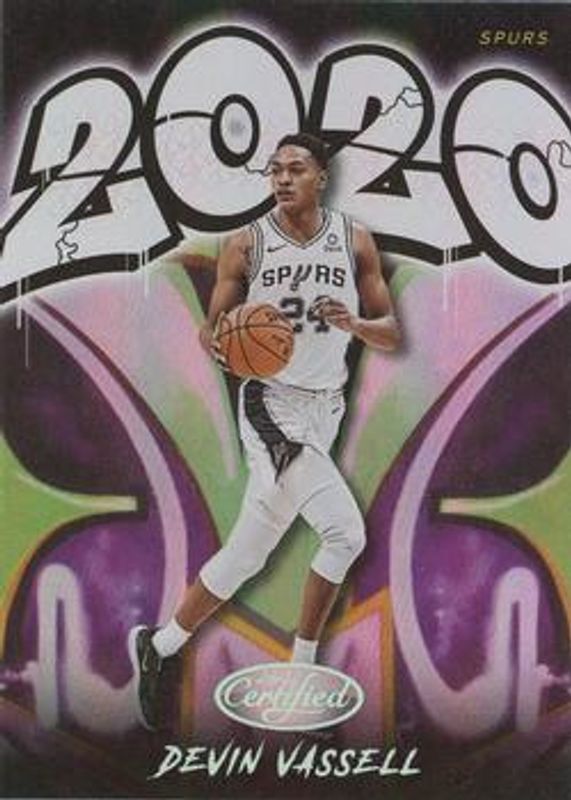The Devin Vassell 2020 Certified #20 2020 Graffiti Rookie card is 1 of 37 Devin Vassell's card variations in the 2020 Certified set being tracked by Sports Card Investor, including #190 Base, #86 Asia Exclusive, #190 Asia Exclusive, #190 Asia Exclusive Gold, and #86 Asia Exclusive Gold.