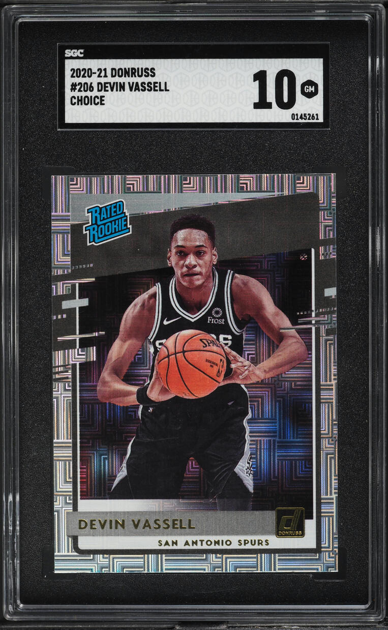 The Devin Vassell 2020 Donruss #206 Choice Rookie card in Raw condition has not changed in price in the last 30 days and was last sold for $1.00 .
