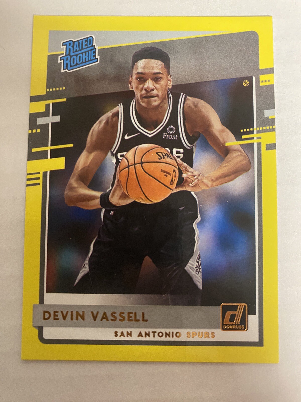 The Devin Vassell 2020 Donruss #206 Yellow Flood Rookie card in Raw condition has not changed in price in the last 30 days and was last sold for $3.69 .