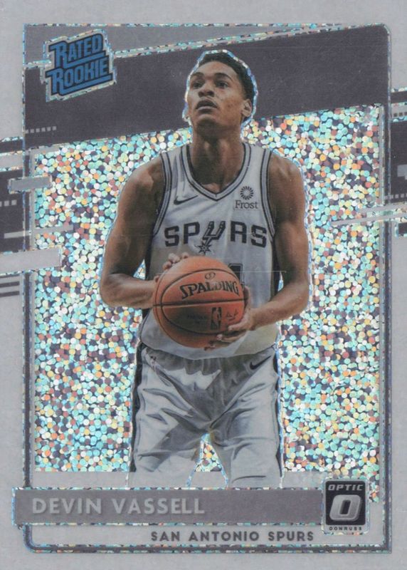 The Devin Vassell 2020 Optic #161 White Sparkle /(SSP) Rookie card in Raw condition has not changed in price in the last 30 days and was last sold for $2.25 .