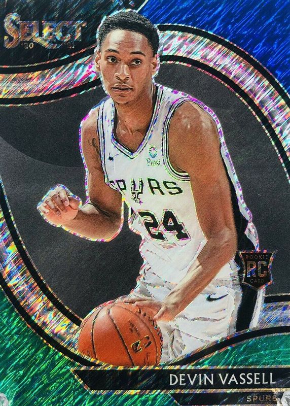2020-21 Select Courtside Devin Vassell Blue White Green Shimmer RC /10 SPURS