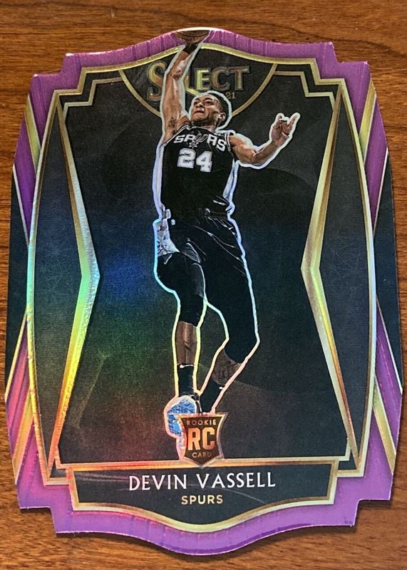 2020-21 Select Premier Level Purple Prizm Die-Cut 23/99 Devin Vassell Rookie RC