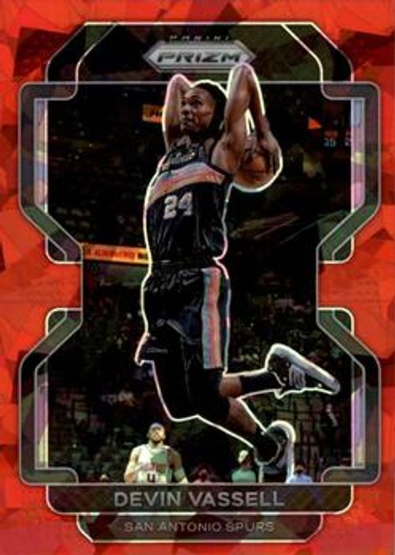 The Devin Vassell 2021 Prizm #130 Red Ice card is 1 of 63 Devin Vassell's card variations in the 2021 Prizm set being tracked by Sports Card Investor, including Base, Blue NBA 75th Anniversary, Blue Wave, Choice Blue Yellow Green, and Factory Set Blue Hyper.