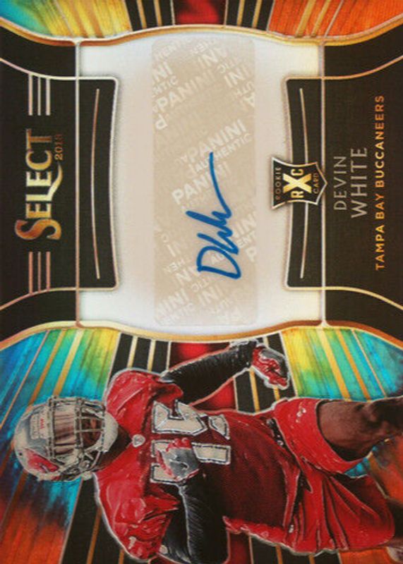 This card is 1 of 4 Devin White's card variations in the 2018 Select set being tracked by Sports Card Investor, including XRC Prizm Autographs /49, XRC Prizm Autographs - Gold /10, and XRC Prizm Autographs - Black /1.